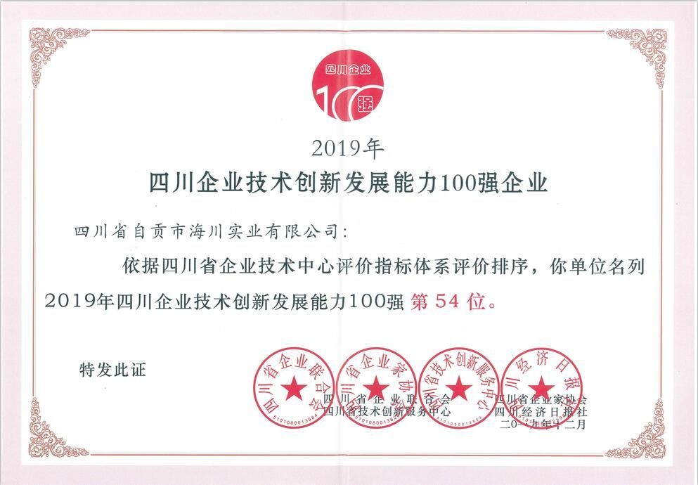 2019年四川省企業(yè)技術創(chuàng)新發(fā)展能力100強